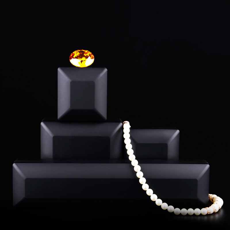 A far more dramatic presentation of a selection of jewelry boxes. In order to drive home the fact that they are jewelry boxes, some jewelry is added for color and texture. Note how the lighting brings out the shape of the boxes and highlights the bevel aspects. I am not crazy about the lighting on the jewelry as it seems garish and amateur, but the boxes do look good. Perhaps a spray behind them would give them a bit more interest?