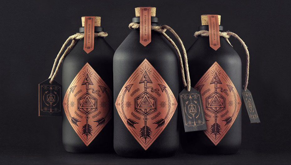 Fantastic detail on these packages gives the photographer a lot to think about. Textures of the label, the bottle, the string and the hang tag are all shown with precision and attention to detail.The side lighting does the desired effect on all of parts of the bottles, but a close examination of the front bottle shows a white reflection running straight up the label in order to make it seem more metallic and to offer a gradient. This fill is slightly seen on the outside bottles as well.