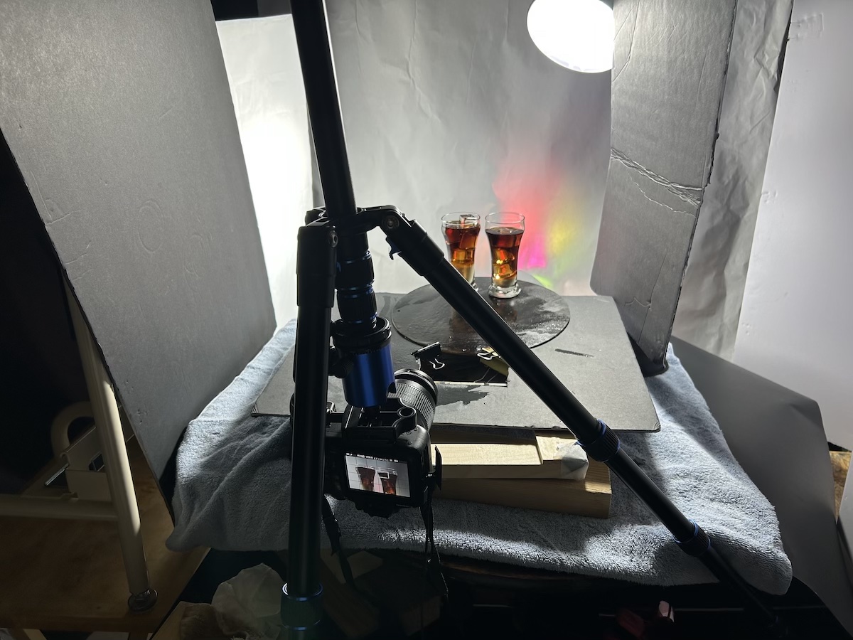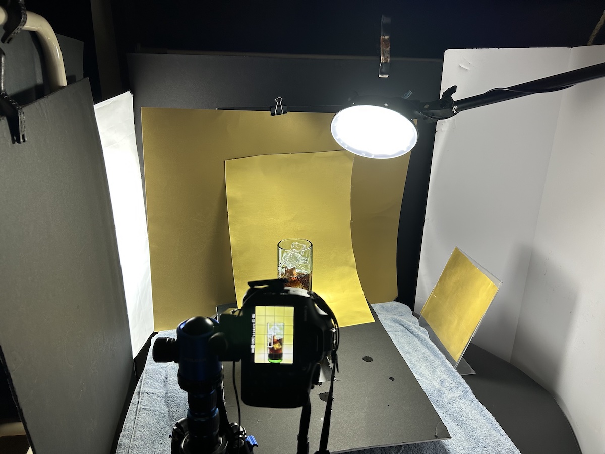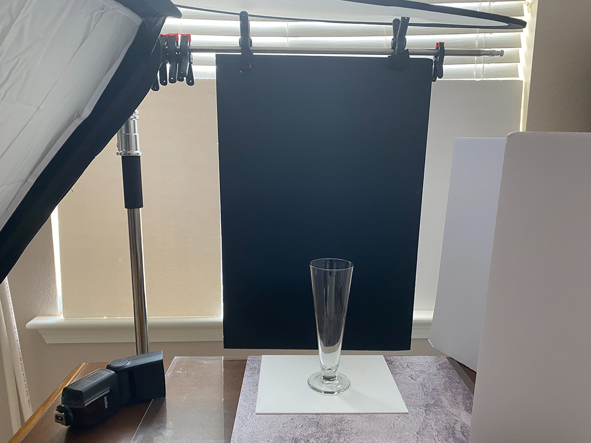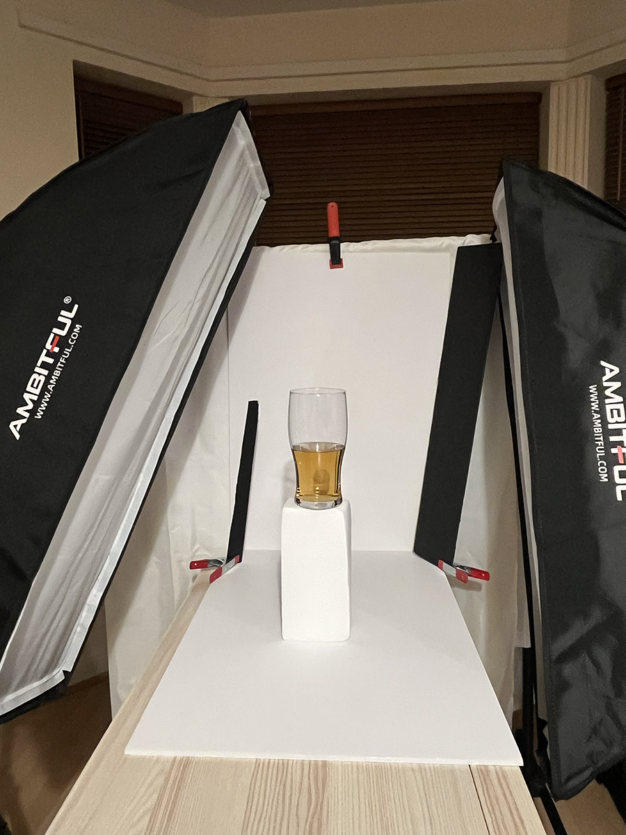 3. Stand in glass of beer or soda already in place for your light and exposure checks.