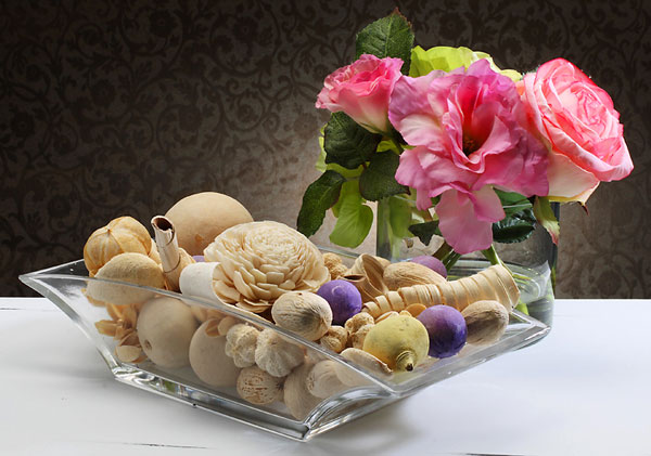The shot below shows how the background has a nice clean look to it because of the small backlight. The gradient actually brings the eye back to the product itself. In this specific shot I moved the backlight to be a little off center so it wouldn’t have that ‘studio product’ look to it. There are cards in front and to the camera left side keeping the fill in check and when you look at the potpourri, you will see a nice highlight on the edges from the backlight Grid-spot.