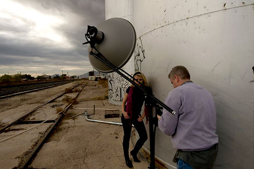 Jerry set up this shot on the side of the silo there. He liked the shape of the curve and what it would do with the light as it fell off of Christina.