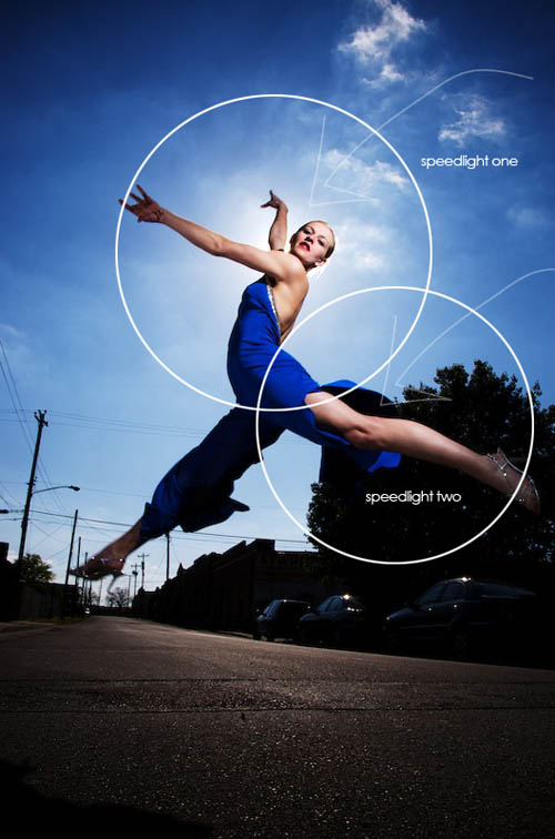 Lighting Diagram for Rees jumping against the sky.